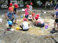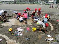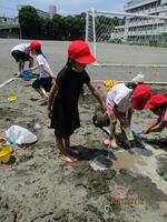 1年生の生活科で夏を感じながらどろんこ遊びを行いました。身近な自然や物を使い遊びを創り出すことの面白さを学びました。