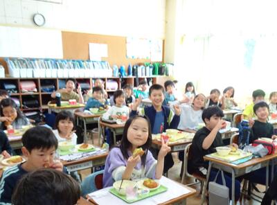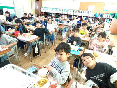 あたりまえに出てくる給食があたりまえではない、と気づき感謝を伝える2年生の子どもたち、とても素敵ですね。