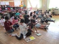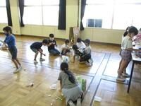 国語の学習で、友だちにおもちゃの作り方を説明するために、4教室に分かれて実際に作っている様子です。