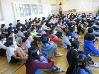 5年生の学年朝会で野外体験学習について先生方から説明がありました。コロナ禍でいろいろな行事が縮小されているなか、宿泊で行けるということは当たり前のことではなく、有難い(有ることが難しい)ことなんだという話をし、感謝の思いと宿泊がかなわなかった6年生の思いも理解したうえで、野外体験活動の目的を達成しようと伝えました。5年生は真剣なまなざしで先生の話を聞いていました。
