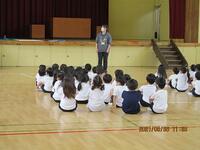最後は亀田先生から運動会についてのお話です。練習の時に気を付けることなどをお話しました。