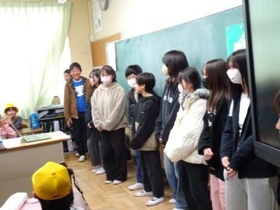 教室では1年間の登校の振り返りや現班長さんへの感謝、そして次の班長さんとのあいさつを交わし、来年度の登校班につなげました。