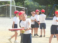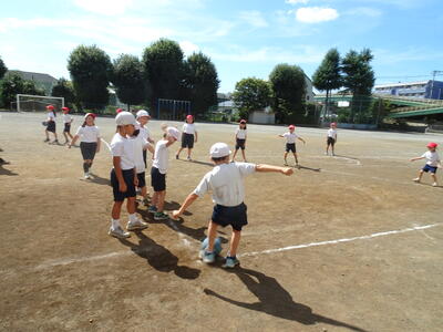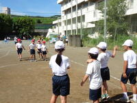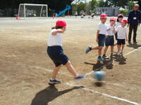 2年生はキックベースです。「がんばれ~!」「いいぞ!」かけ声をかけ合いながら楽しんでします。