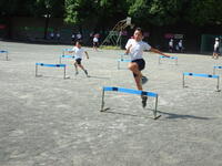 4年生はハードル走です。個人タイムを計測しながら、全力で走っています。