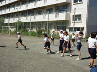 快晴の秋空のもと、体育をのびのび行っていました。