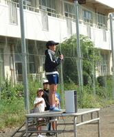 5年生は走り幅跳びです。助走から勢いをつけて飛び込んでいました。