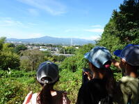 谷戸山はまさに探険日和です。伝説の丘からは大山や丹沢の山々がくっきりと見え、その下を時折、小田急線が通る風景に歓声があがっていました。