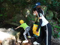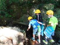 座間は地下水の沸く町です。わきみずの谷では、ひんやり透き通った湧き水に手を浸し、「つめたい!」と感触を味わっていました。