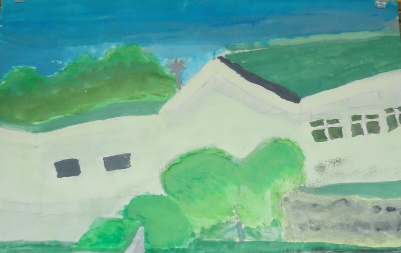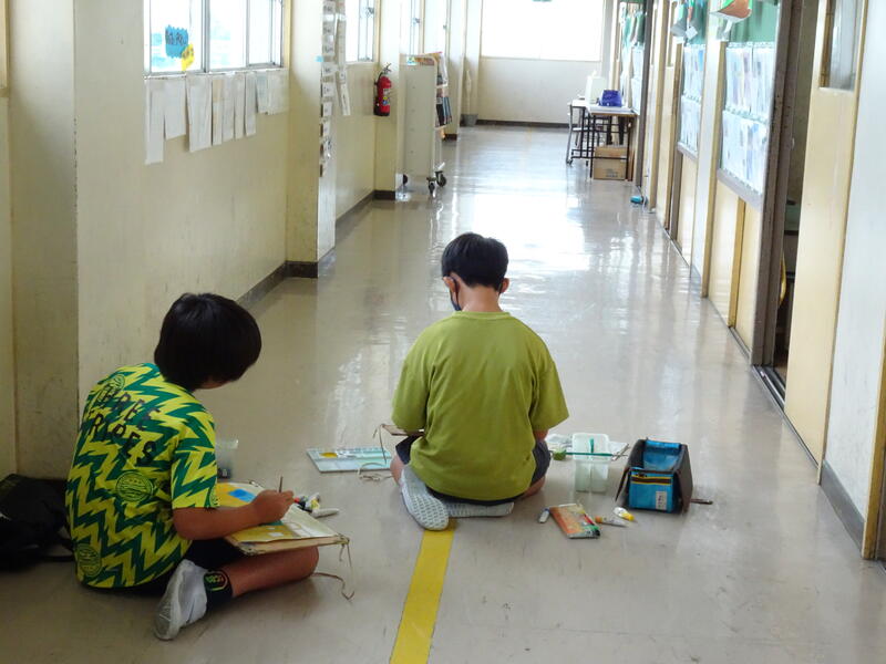 図工では思い出の校舎の好きな場所を選んで描いています。