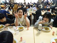 今日は香りからおいしさの伝わってくる、みそラーメンとごまゴボウでした。ごまゴボウは素揚げしたゴボウと大豆にごまがかかり、香ばしさや歯ごたえが良く、他では味わえない給食オリジナルのおいしさです。