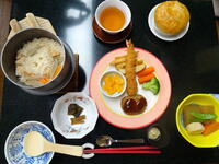 今日は豆腐専門店のがんもどきが主役です。味が染みて、大変おいしい一品でした。磯香あえも海苔香りが良く、主菜との相性も抜群でした。