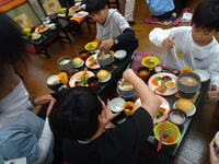 きのこごはんに竹輪のもみじ揚げ、そして人参もみじの入ったみそ汁、秋のごちそうを目でもおいしく味わいました。給食を通して、季節を味わえる幸せをしみじみ感じます。