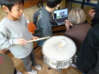 たたく場所や楽器、たたき方の違いで音が変わってくることにも気づいていました。