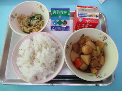 塩味を効かせた肉じゃがも給食ならではの、ごはんとの相性の良い献立です。