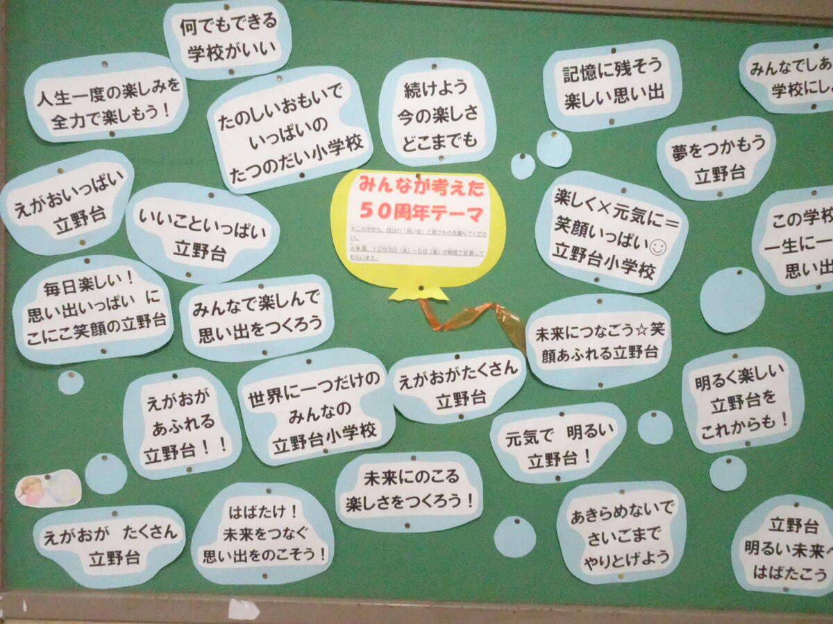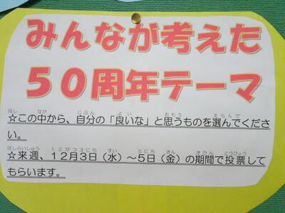 各クラスで考えた50周年のテーマ候補作品が公表されました。