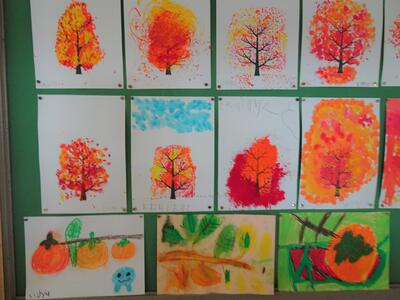 柿、どんぐり、ハロウィン、山茶花など、校内は空きの風景でいっぱいです。