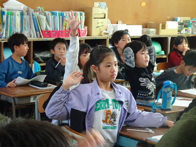 たくさんの子たちが手をあげました。全校の前で堂々自分の考えを言える姿、素晴らしいです!
