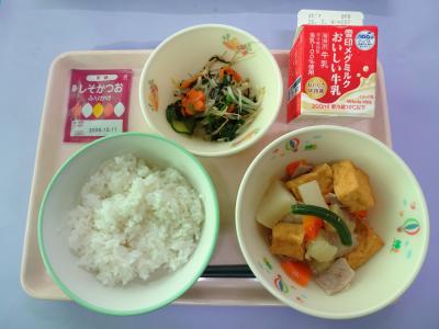 【献立】ごはん・大根と厚揚げのたいたん・磯香あえ・ふりかけ・牛乳