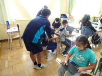 1~3年生の教室に入り、教員の手伝いや子どもたちのサポート・見守りを体験しました。