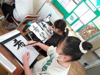 2年生は新年の目標をしたためました。「新しいべんきょうをがんばります」「友だちとなかよくする」・・・決意をしながら書けました。