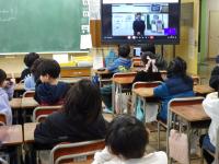 今日は3年生が、北大和小学校の3年生と互いの市やまちの良さを伝え合う「やまざま交流会」をオンラインで開催しました。