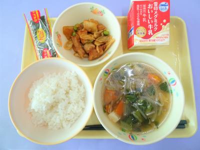【献立】ごはん・チキンチキンごぼう・五目スープ・のり・牛乳