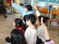 北大和小学校は児童数が1000名を超えることを聞き、目を大きくして驚いている場面もありました。