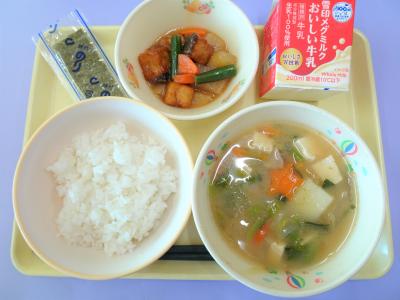 【献立】ごはん・ぶりと大根の煮物・豚汁・のり・牛乳