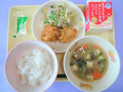 今日は6年1組が立てた献立「チキン南蛮給食」です。タルタルソースも付いてボリューム満点、塩ナムルと良く合います。なめこ汁は安心するおいしさでした。