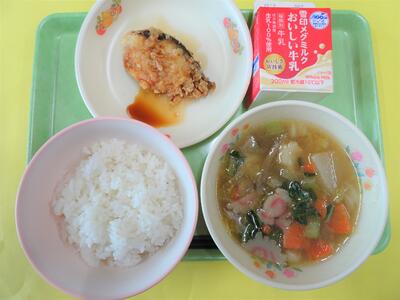 【献立】ごはん・魚のみそだれ・沢煮椀・牛乳