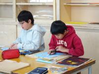 5年生は、図工の版画、家庭科のランチョンマットと、作品づくりに励んでいました。
