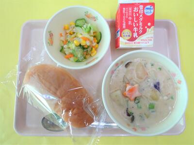 【献立】コッペパン・秋野菜のミルク煮・カミカミサラダ・牛乳