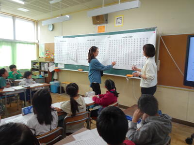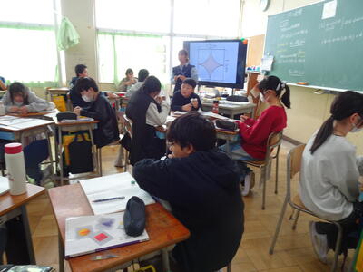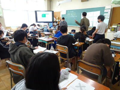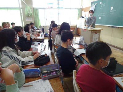 栄養士の先生がゲストティーチャーとなり、栄養・彩り・地産地消・旬・調理方法・値段など、給食献立を立てるときのポイントを紹介してくれました。