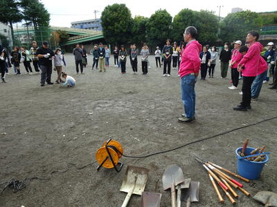 保護者、地域の皆様、子どもたち、スポーツ団体の皆様、本当にたくさんの方々が参加してくださり、和気あいあいと作業が進みました。