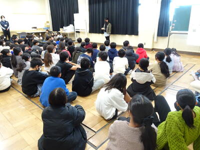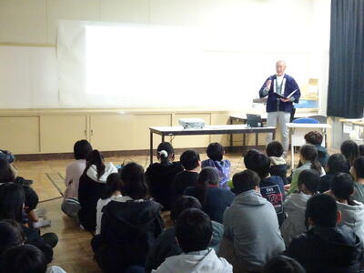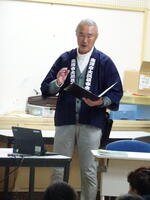 6年生が郷土の伝統行事「大凧まつり」について、座間大凧保存会の鈴木義則さん(元座間市教育委員)を講師にお招きし、お話を伺いました。
