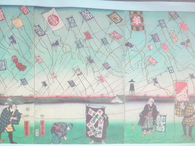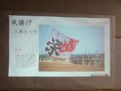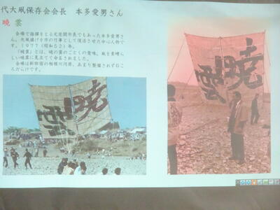 大凧は江戸のころから市民の楽しみとして、新年の厄払いや子どもの健やかな成長を祝ってあげられたことが起源になっていることなど大凧の歴史について教えていただきました。