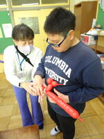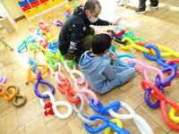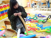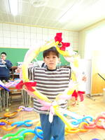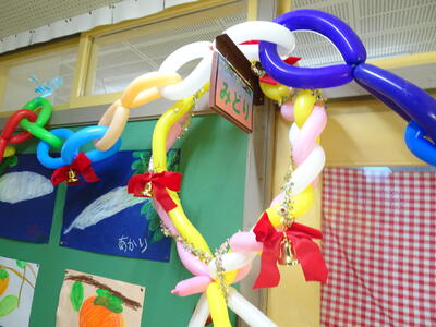 最初は風船が破裂するのを怖がって恐る恐るだった児童も、やさしく丁寧に教えていただき、リースや輪飾りなどが出来上がり、うれしそうでした。
