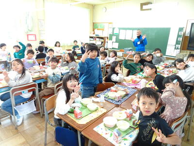 日々の愛情たっぷりの美味しい給食に支えられ頑張ってきた子どもたち、今日もどのクラスも笑顔があふれていました。
